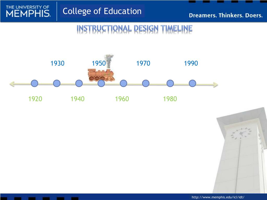 College of Education Instructional Design Timeline 1930 1950 1970 1990 1920 1940 1960 1980 http://www.memphis.edu/icl/idt/