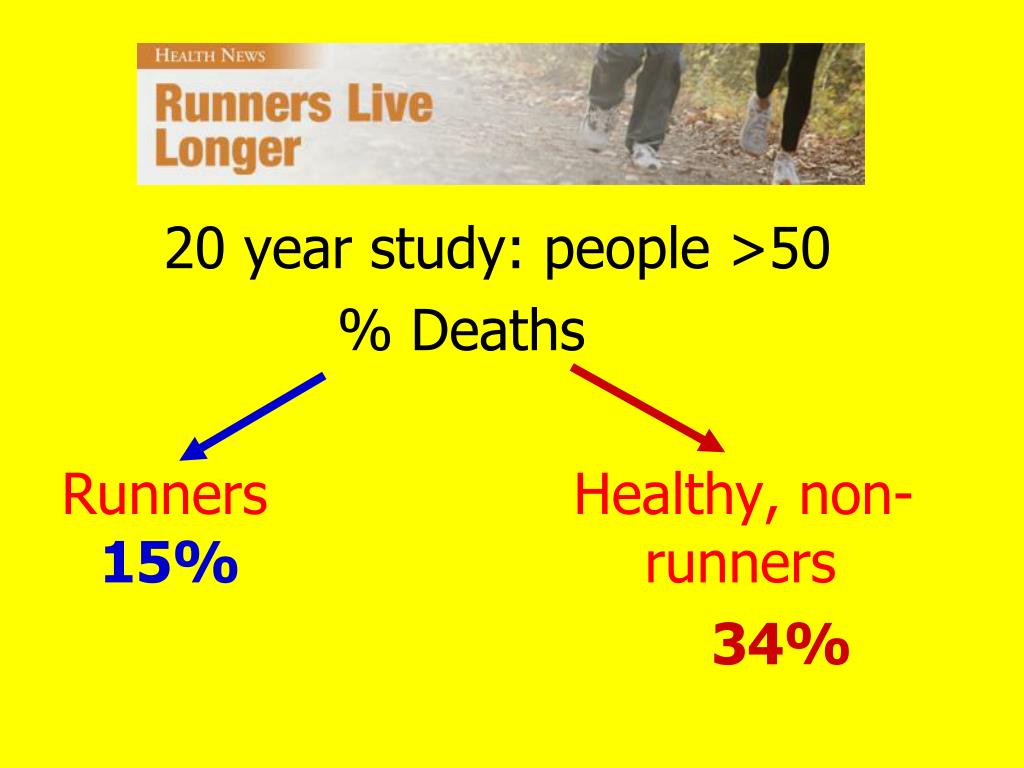 20 year study: people >50 % Deaths RunnersHealthy,non-15%runners 34%