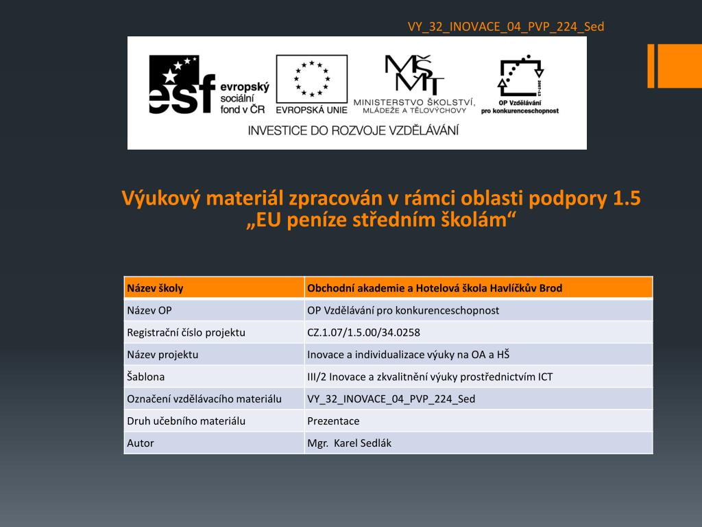 VY_32_INOVACE_04_PVP_224_Sed Výukový materiál zpracován v rámci oblasti podpory 1.5„EU peníze středním školám“