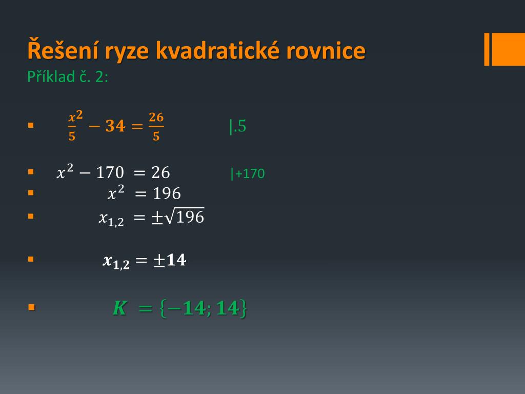 Řešení ryze kvadratické rovnice • Příklad č. 2: • |+170