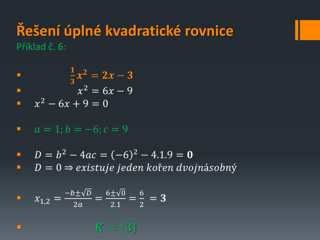 Řešení úplné kvadratické rovnice • Příklad č. 6: