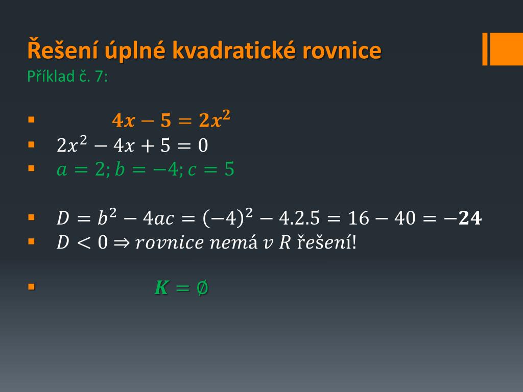 Řešení úplné kvadratické rovnice • Příklad č. 7: