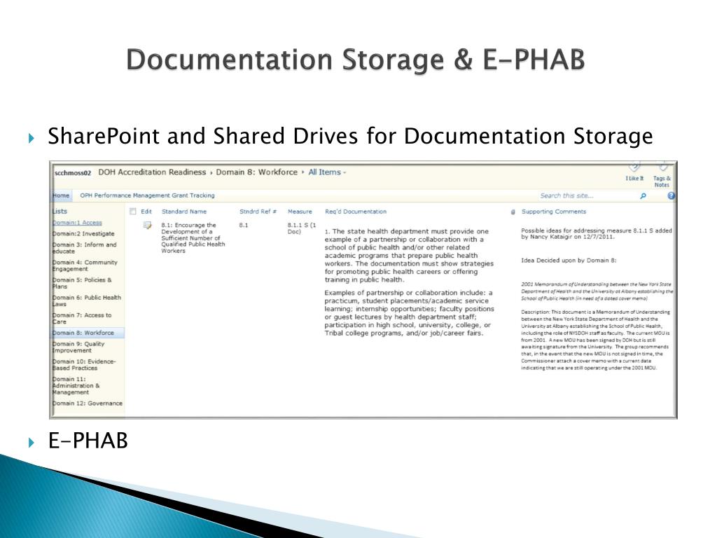 Documentation Storage & E-PHAB • SharePoint and Shared Drives for Documentation Storage • E-PHAB
