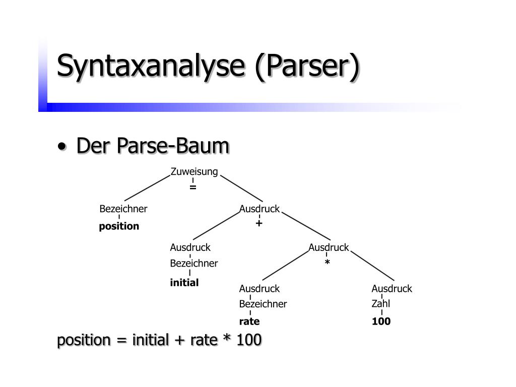 Syntaxanalyse (Parser) • Der Parse-Baum position = initial + rate * 100