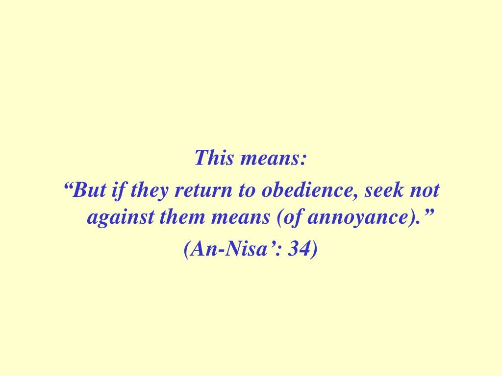 This means: • “But if they return to obedience, seek not against them means (of annoyance).” • (An-Nisa’: 34)