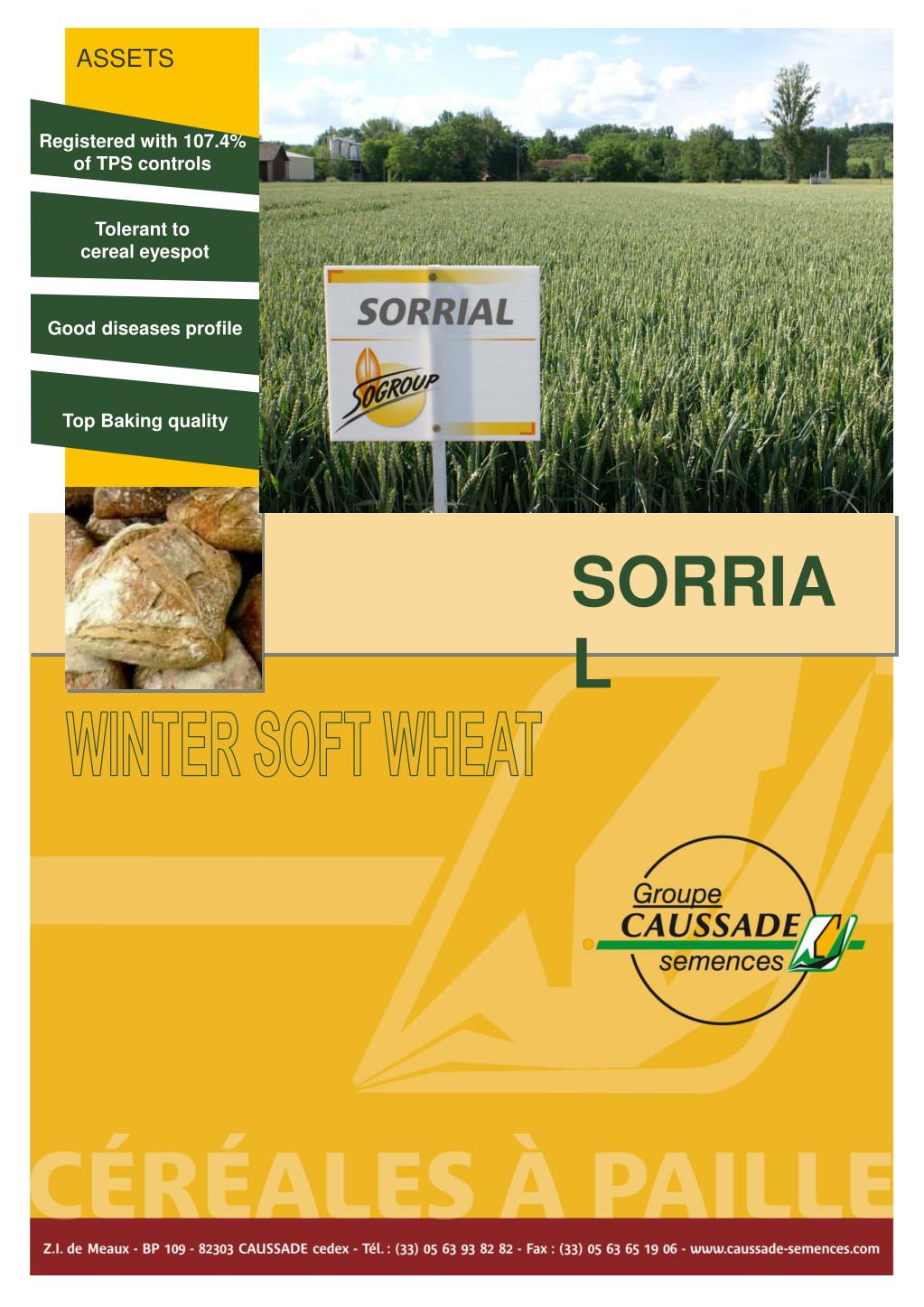 Registered with 107.4% of TPS controls Tolerant to cereal eyespot Good diseases profile Top Baking quality SORRIAL