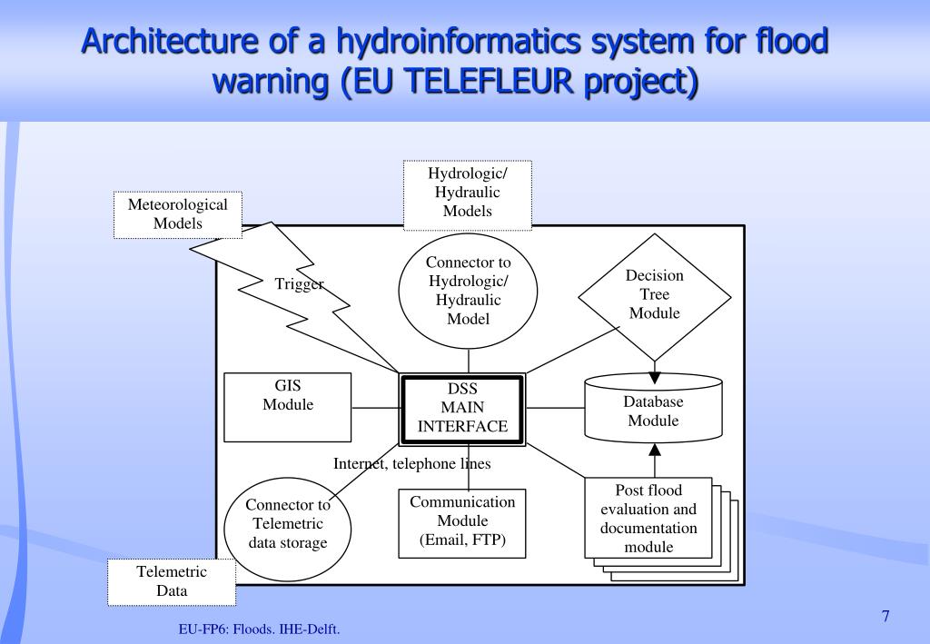Architecture of a hydroinformatics system for flood warning (EU TELEFLEUR project) EU-FP6: Floods. IHE-Delft.