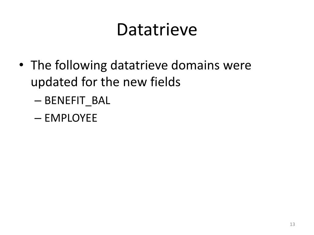 Datatrieve • The following datatrieve domains were updated for the new fields • BENEFIT_BAL • EMPLOYEE
