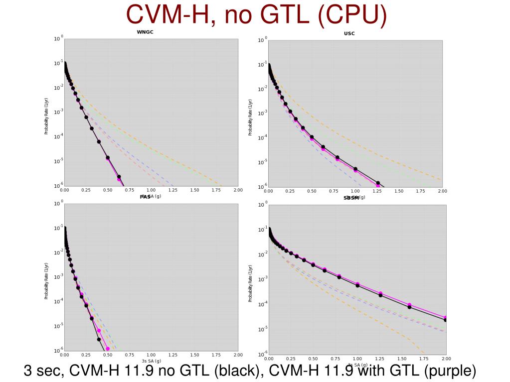 Verification • 4 sites (USC, PAS, WNGC, SBSM) • AWP-SGT-CPU, CVM-S4.26 • AWP-SGT-GPU, CVM-S4.26 • AWP-SGT-CPU, BBP 1D • AWP-SGT-GPU, CVM-H 11.9, no GTL • Plotted with previously calculated curves