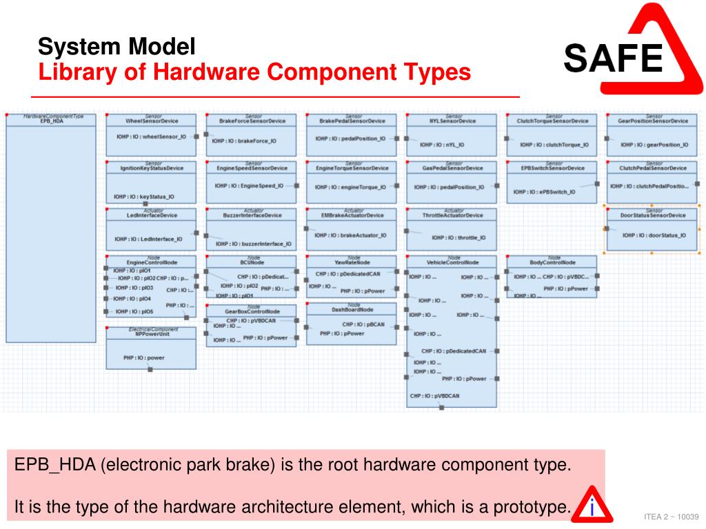 System ModelLibrary of Hardware ComponentTypes EPB_HDA (electronic park brake) istheroothardwarecomponent type. Itisthe type ofthehardwarearchitectureelement, whichis a prototype. i