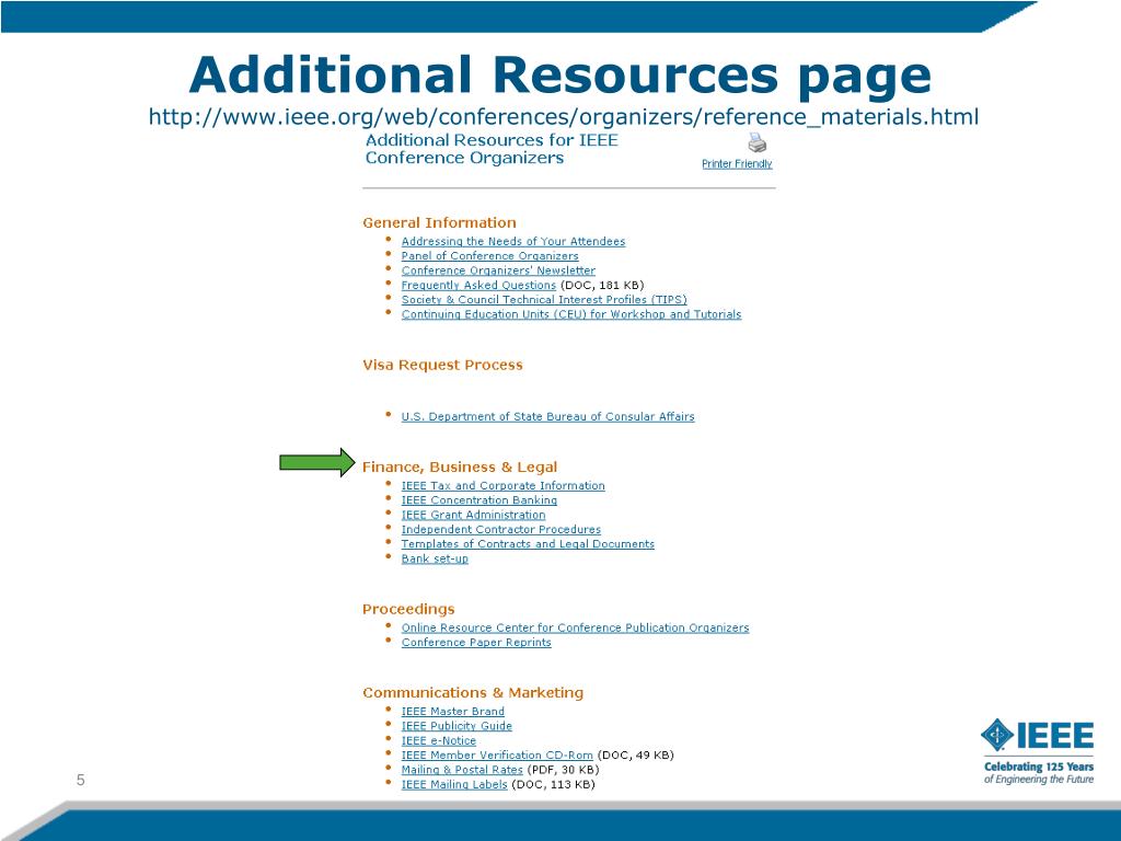 Additional Resources pagehttp://www.ieee.org/web/conferences/organizers/reference_materials.html