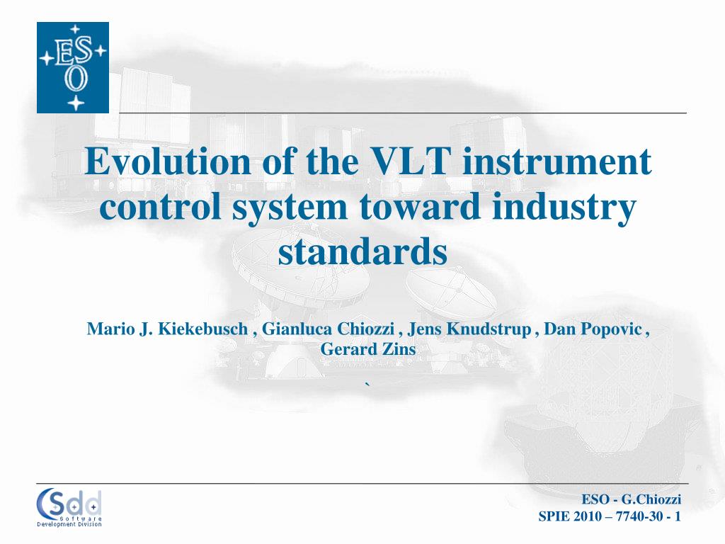 Evolution of the VLT instrument control system toward industry standards Mario J. Kiekebusch , Gianluca Chiozzi, Jens Knudstrup, Dan Popovic, Gerard Zins `