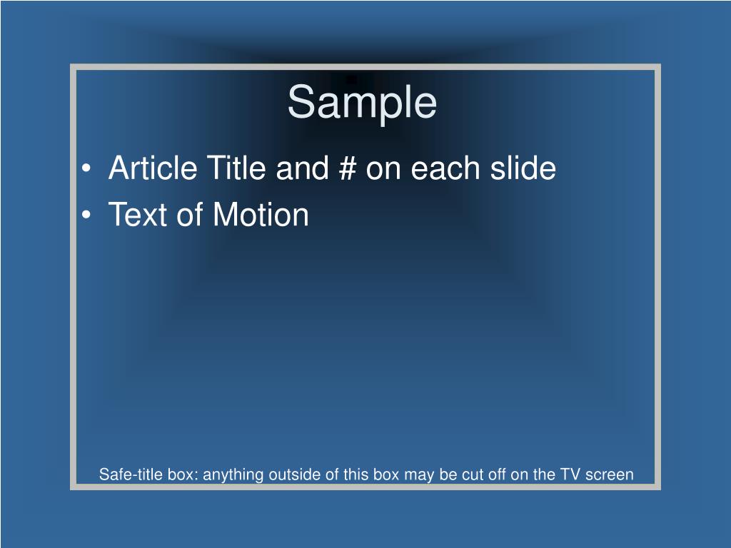 Electronic Presentation Guidelines. Guidelines. Article Title and # on Each Slide Text of Motion Should be on First and Last Slide. Guidelines. Safe Title Box