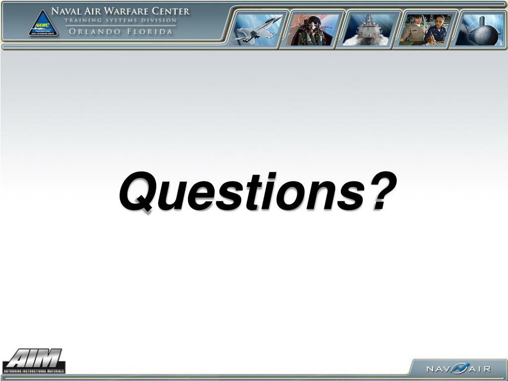 LO Module Webification • Purpose: To meet NETC’s objective to modernize the AIM toolset into a fully Web-based environment • Prototype Information: • “Very” Early stages in prototype development • Build will integrate existing LO Module functions of AIM I/II desktop software – equivalent, not identical, functionality • Common look-and-feel of CPM • CPM and LO Module residing in the same software program will eliminate EDE file transfers • Simplify user account management • Expected delivery date for Phase I –Aug 13