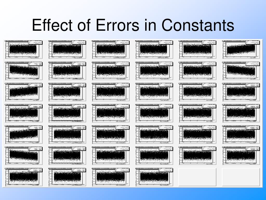 Effect of Errors in Constants • A large set of ray traces with many different calibration constants was taken. • Error on the reconstructed parameters then plotted against each calibration constant. • The gradient gives the dependence on the constant.