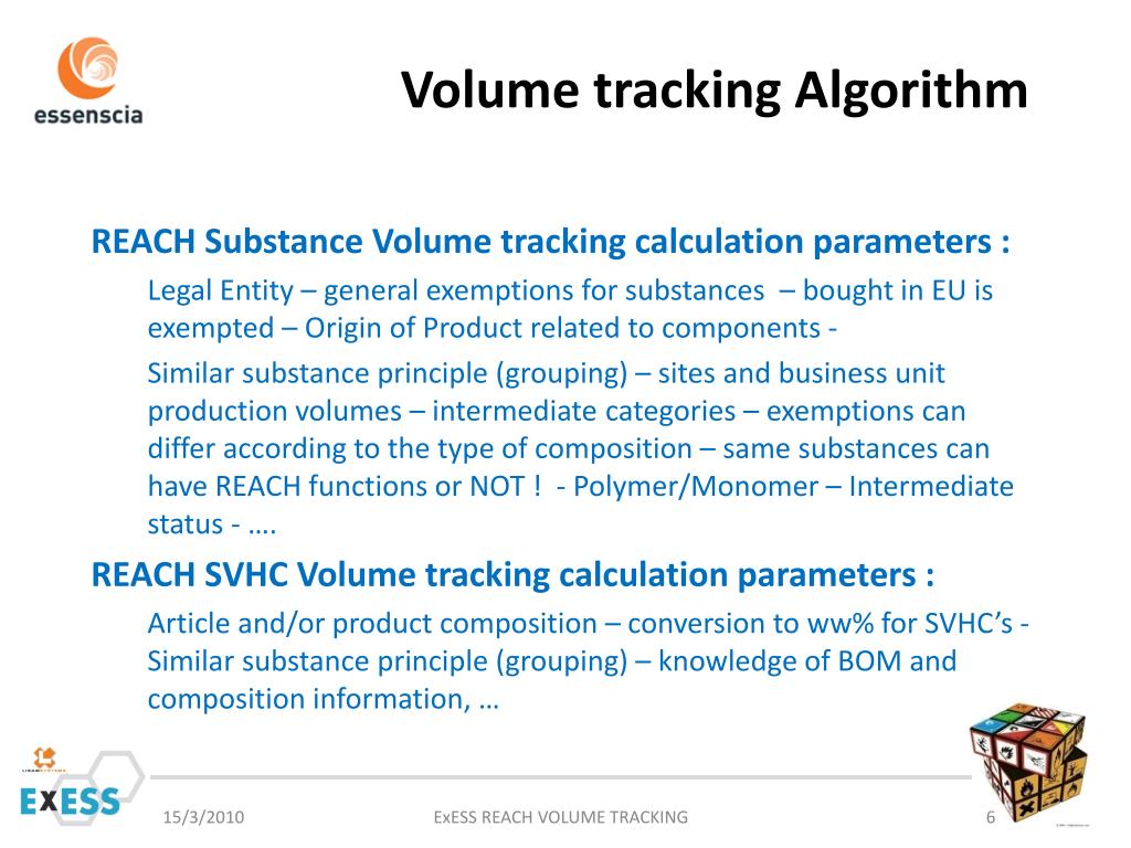 Volume tracking Algorithm ExESS REACH VOLUME TRACKING
