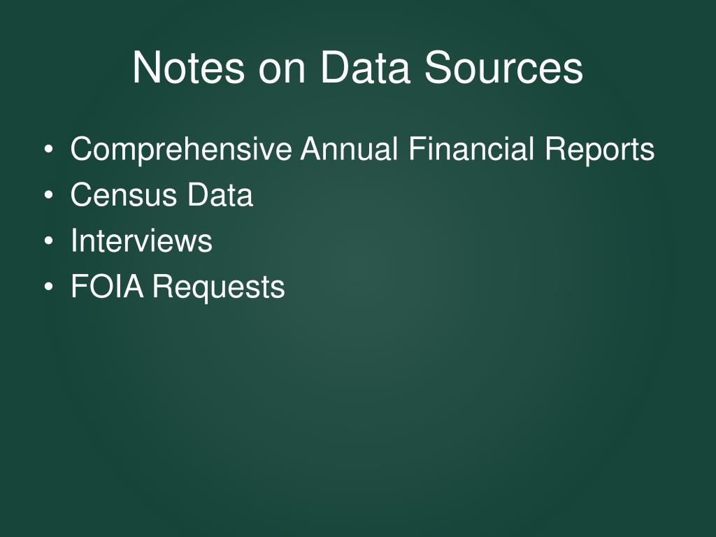 Notes on Data Sources • Comprehensive Annual Financial Reports • Census Data • Interviews • FOIA Requests