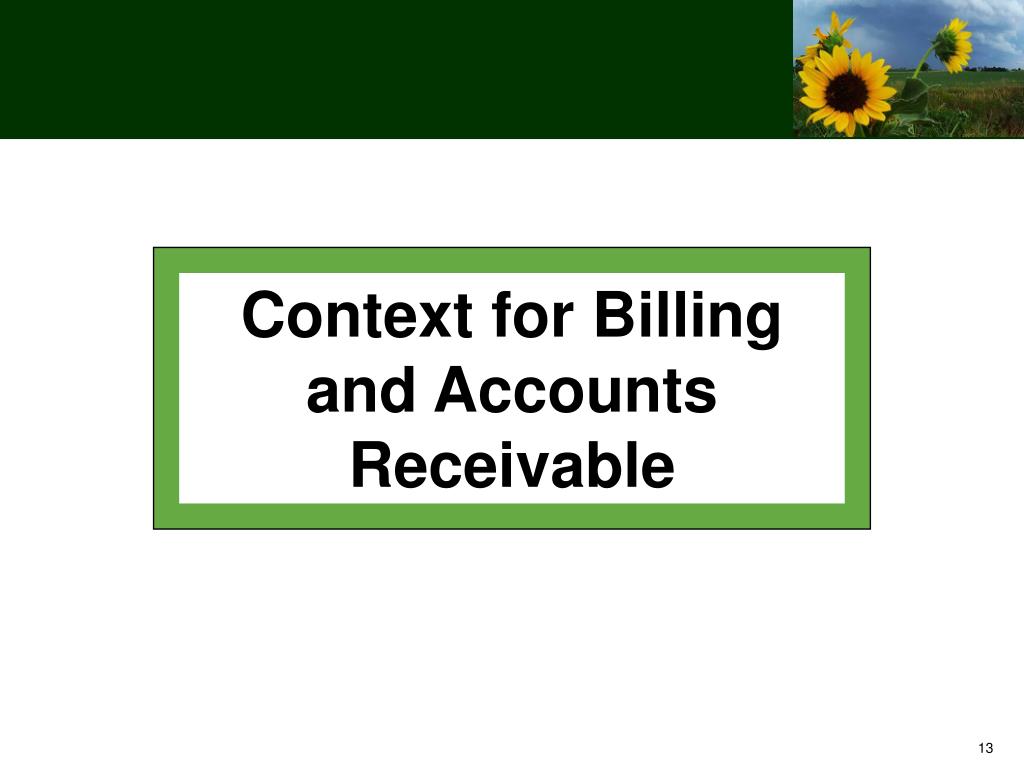 Billing & Accounts Receivable Key Terms & Definitions Aging – The process of allowing a user to view the time that has passed since customers were billed or a pending item was established. Bill Type – A category of activity that should be grouped together on a particular bill. Customer – Entity that receives or consumes products (goods or services) and has the ability to choose between different products and suppliers. Used in SMART Billing and Accounts Receivable. Deposits – The SMART fields that record cash, checks, money orders, electronic receipts of money into the State's bank account to be reflected in an agency fund.