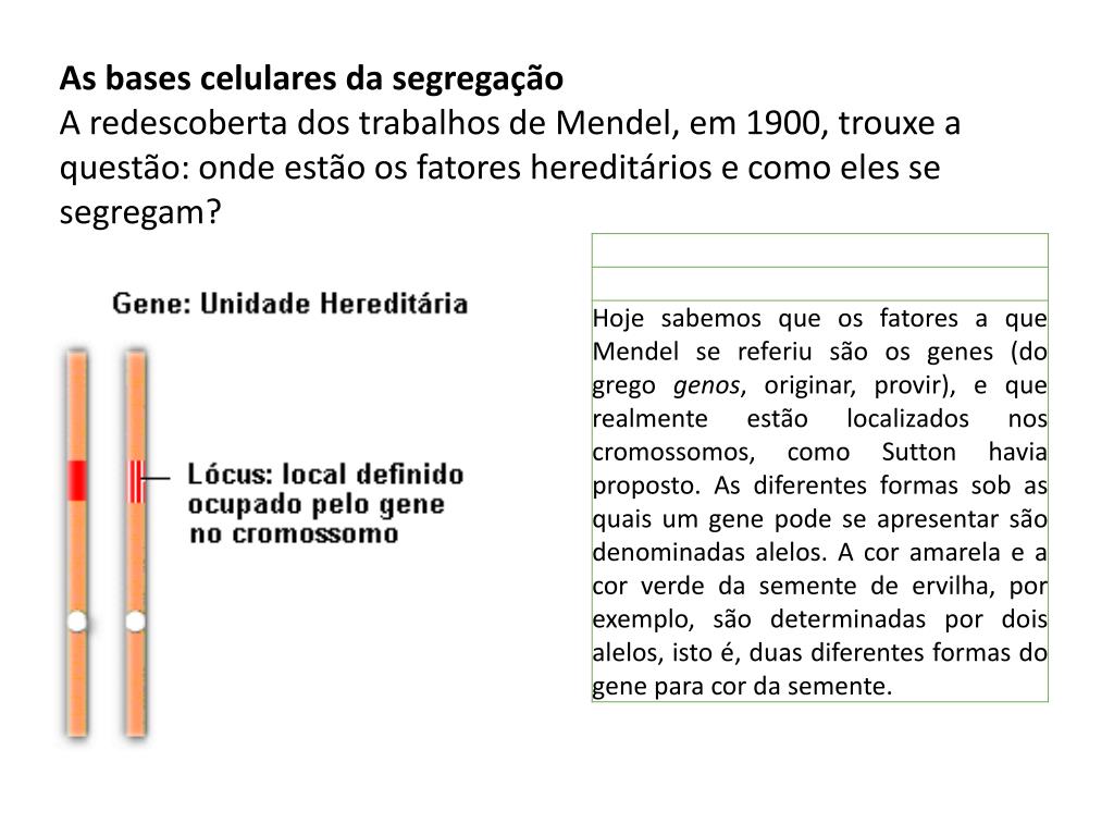 As bases celulares da segregação A redescoberta dos trabalhos de Mendel, em 1900, trouxe a questão: onde estão os fatores hereditários e como eles se segregam?