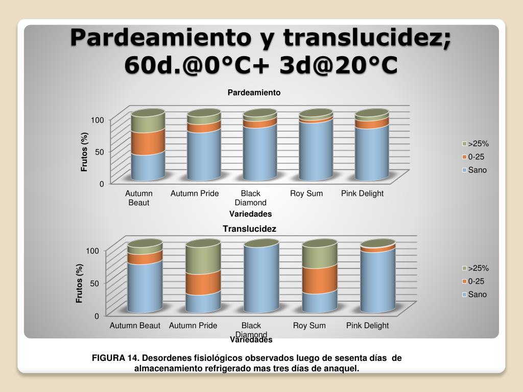 Pardeamiento y translucidez; 60d.@0°C+ 3d@20°C FIGURA 14. Desordenes fisiológicos observados luego de sesenta días de almacenamiento refrigerado mas tres días de anaquel.