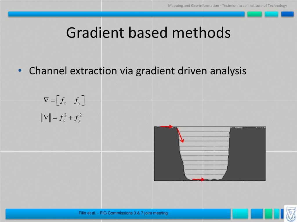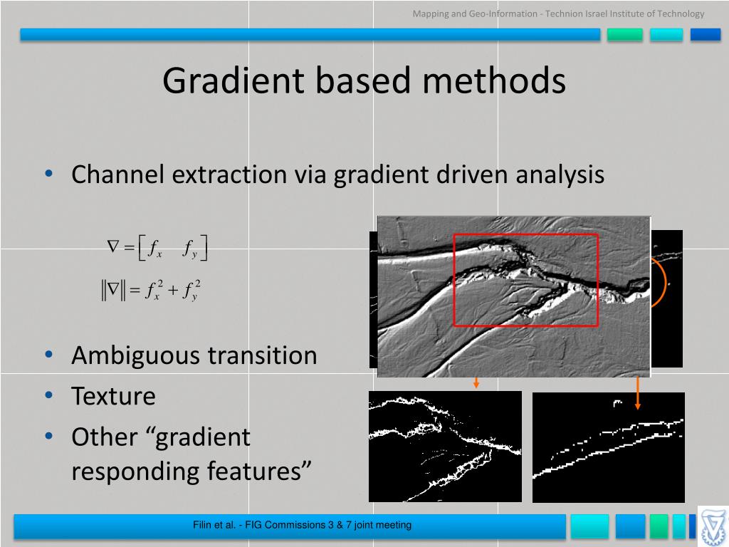 Gradient based methods • Channel extraction via gradient driven analysis • Ambiguous transition • Texture • Other “gradient responding features”
