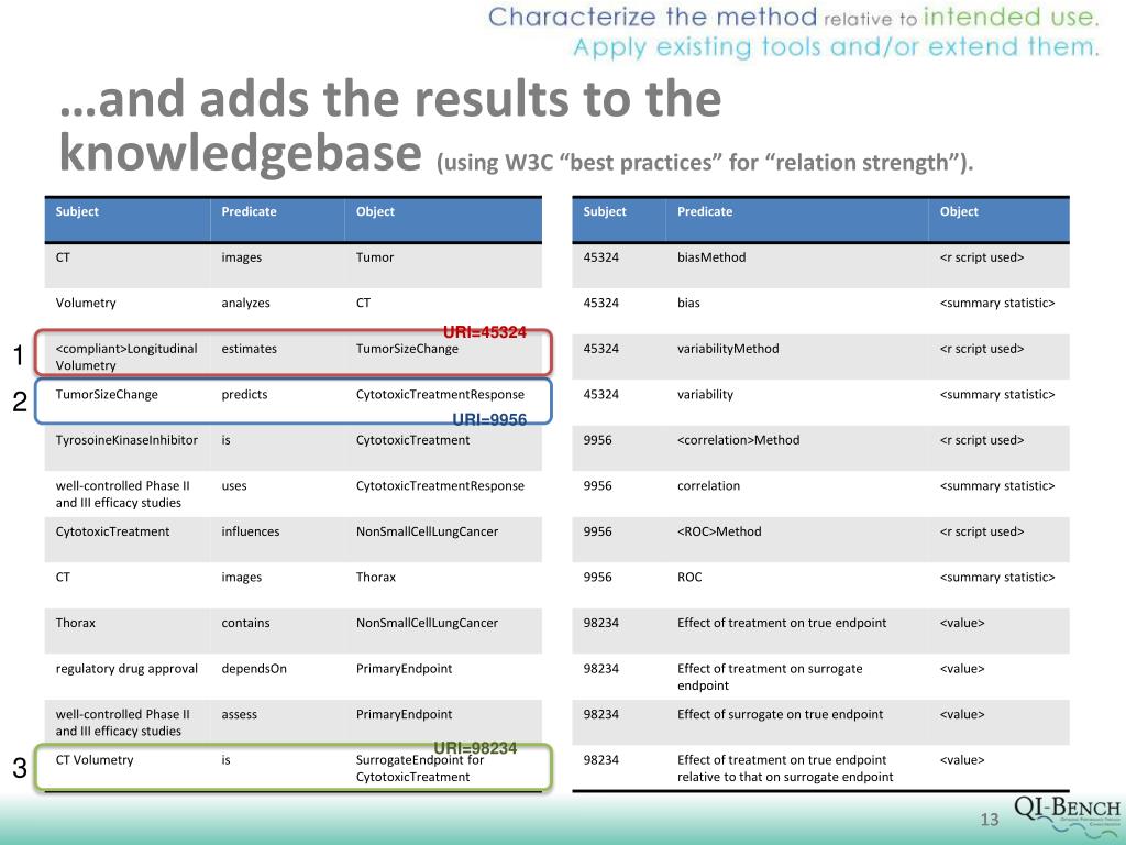 …and adds the results to the knowledgebase (using W3C “best practices” for “relation strength”). URI=45324 1 2 URI=9956 URI=98234 3 13