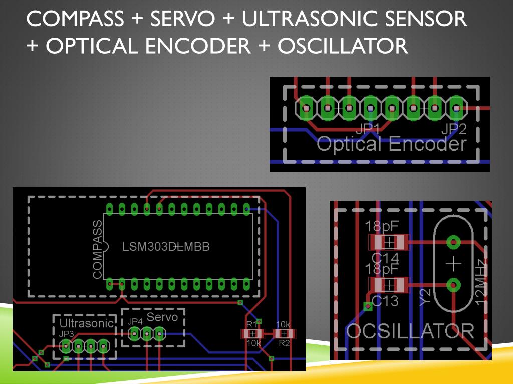 Compass + Servo + ultrasonic Sensor + OPTICAL ENCODER + OSCILLATOR