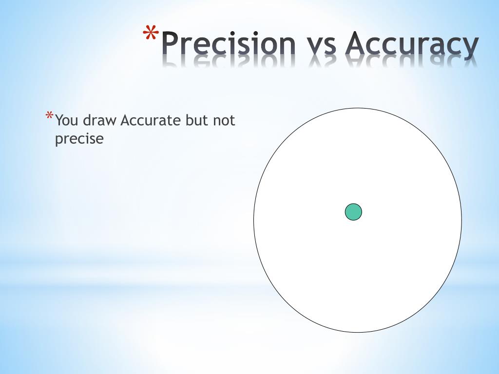 Precision- getting the same results again & again (reproducible) Accuracy- getting results close to the accepted or standard value Precision vs. Accuracy