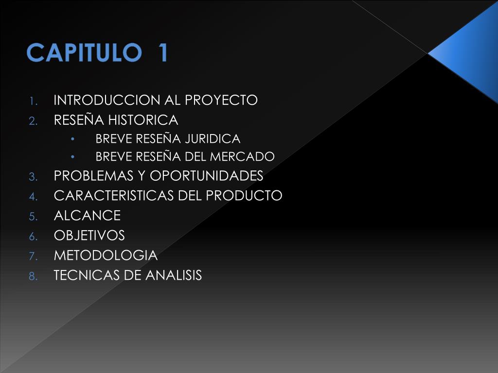 CAPITULO 1 INTRODUCCION AL PROYECTO RESEÑA HISTORICA BREVE RESEÑA JURIDICA BREVE RESEÑA DEL MERCADO PROBLEMAS Y OPORTUNIDADES CARACTERISTICAS DEL PRODUCTO ALCANCE OBJETIVOS METODOLOGIA TECNICAS DE ANALISIS