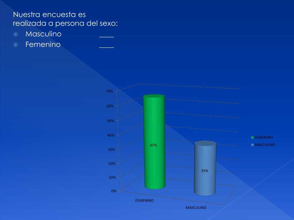 Nuestra encuesta es realizada a persona del sexo: • Masculino ____ • Femenino ____