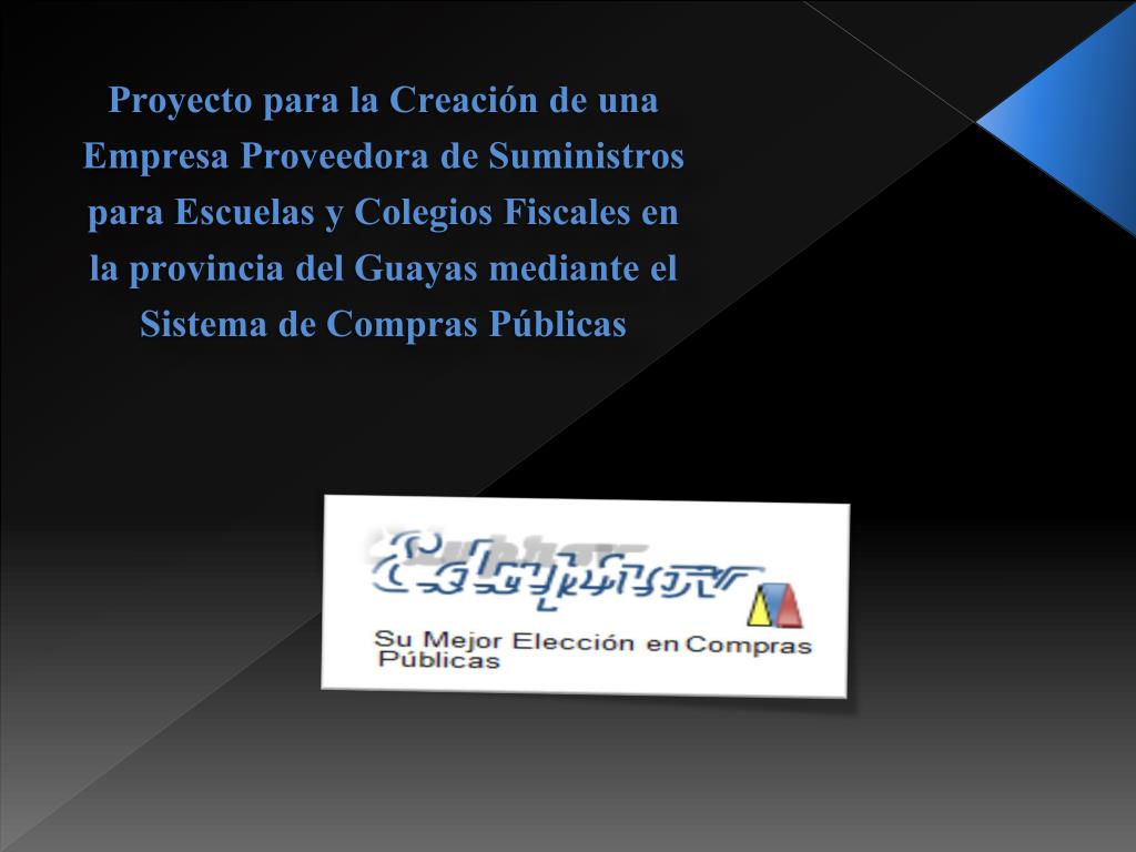 Proyecto para la Creación de una Empresa Proveedora de Suministros para Escuelas y Colegios Fiscales en la provincia del Guayas mediante el Sistema de Compras Públicas