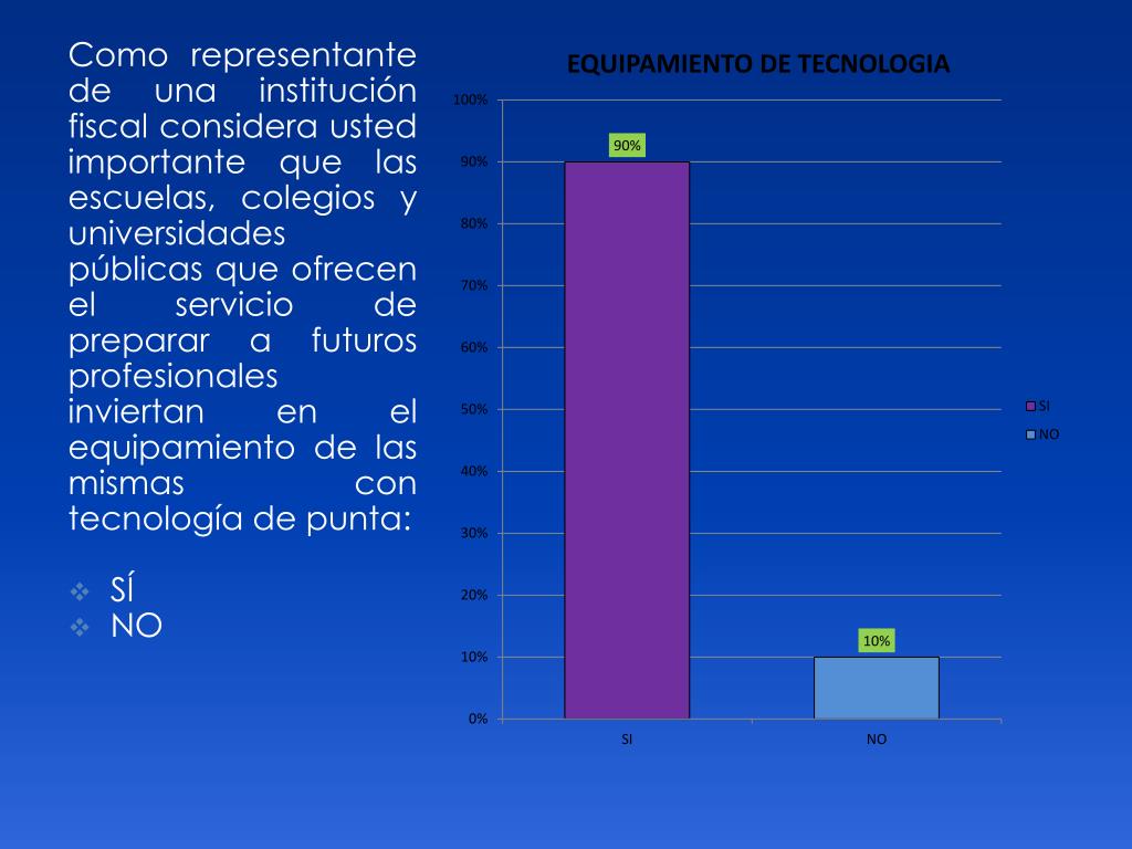 Como representante de una institución fiscal considera usted importante que las escuelas, colegios y universidades públicas que ofrecen el servicio de preparar a futuros profesionales inviertan en el equipamiento de las mismas con tecnología de punta: SÍ NO
