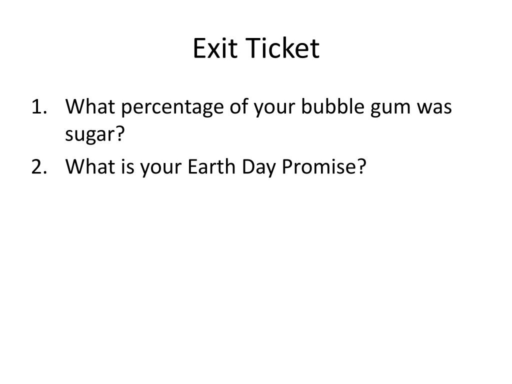 Exit Ticket • What percentage of your bubble gum was sugar? • What is your Earth Day Promise?