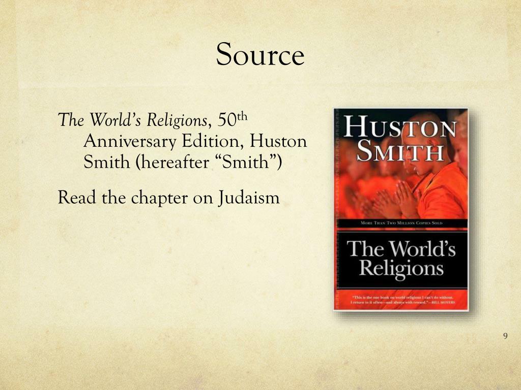 Source The World’s Religions, 50th Anniversary Edition, Huston Smith (hereafter “Smith”) Read the chapter on Judaism