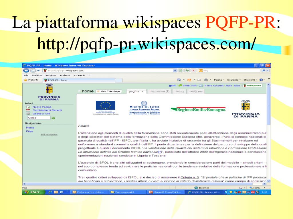 La piattaforma wikispaces PQFP-PR: http://pqfp-pr.wikispaces.com/