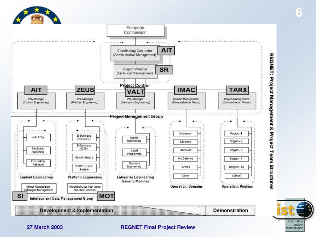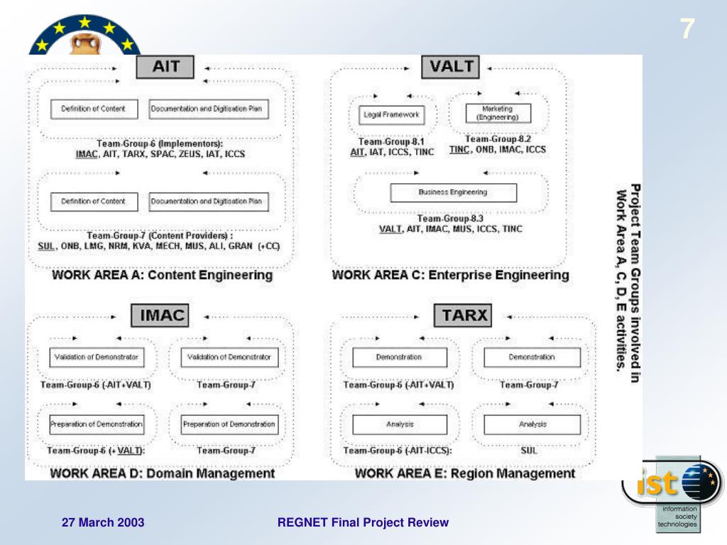 T 7.1 – Management Structure • PCG – Project Control Group • PMG – Project Management Group • EPMG – Extended Project Management Group • PTG – Project Team Group • Exploitation Committee • User Group • Workpackage/Task Leader REGNET Final Project Review
