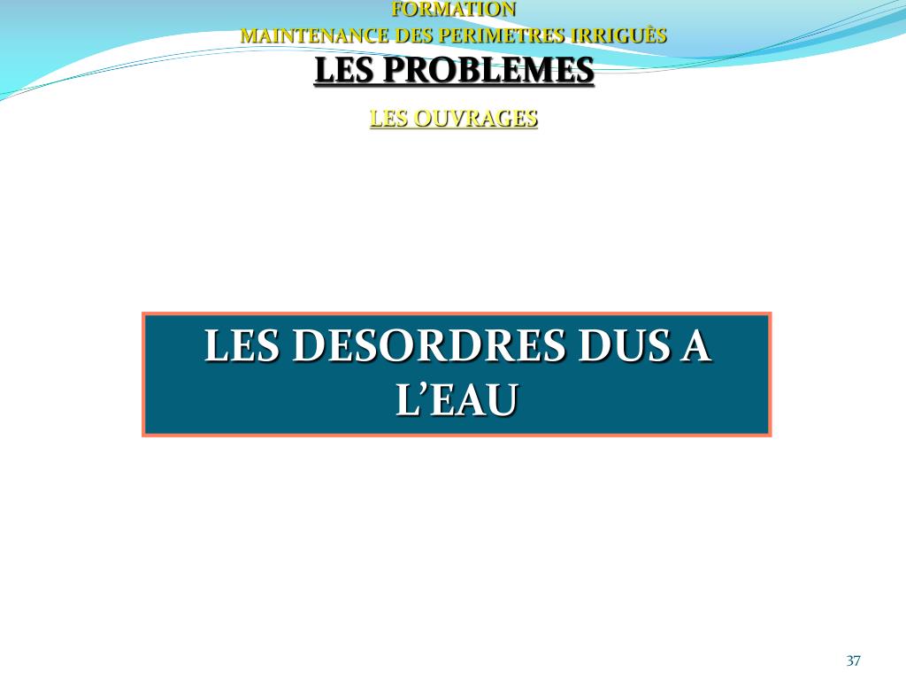 FORMATION MAINTENANCE DES PERIMETRES IRRIGUÈS LES PROBLEMES LES RESEAUX LES DESORDRES DUS A L’EAU