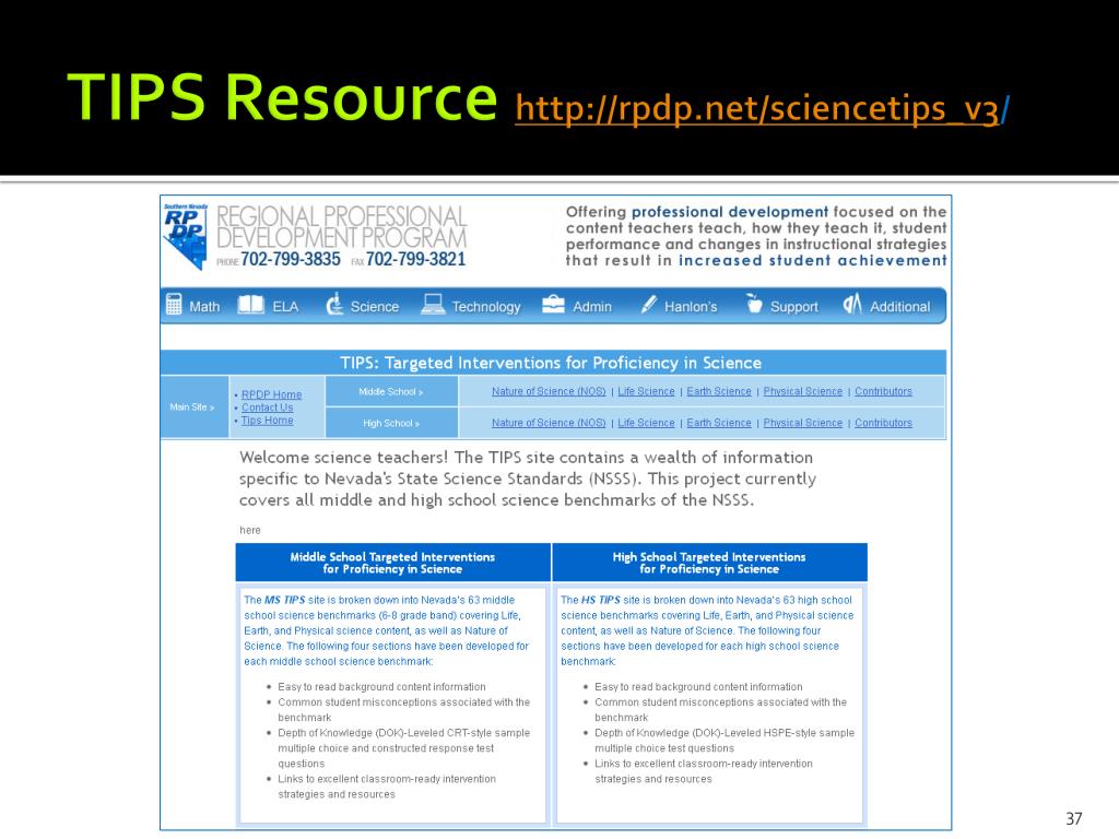 Nevada State Science Standards • Divided into Four (4) Strands • Physical Science • Life Science • Earth & Space Science • Nature of Science • Within each Strand are Unifying Concepts • Ex. Earth & Space Science • A - Atmospheric Processes and the Water Cycle • B - Solar System and Universe • C - Earth’s Composition and Structure