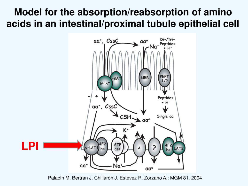 Model for the absorption/reabsorption of amino acidsin an intestinal/proximal tubule epithelial cell LPI Palacín M. Bertran J. Chillarón J. Estévez R. Zorzano A.: MGM 81. 2004