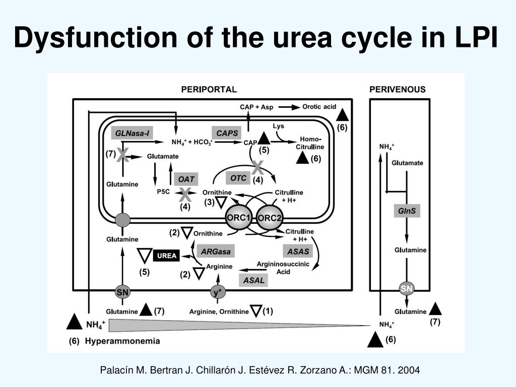 Dysfunction of the urea cycle in LPI Palacín M. Bertran J. Chillarón J. Estévez R. Zorzano A.: MGM 81. 2004