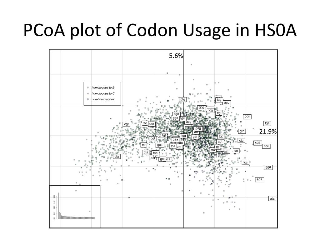 PCoA plot of Codon Usage in HS0A 5.6% 21.9%