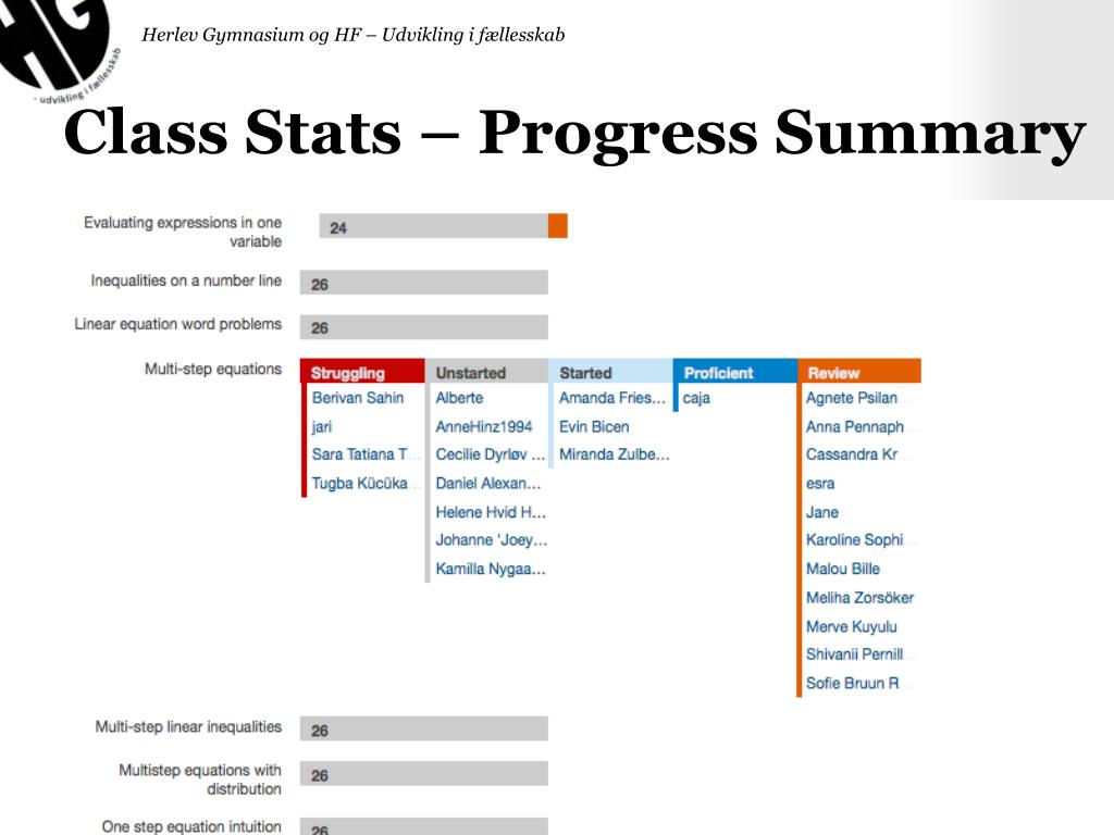 Hvad er Khan Academy • Verdens største gratis virtuelle skole • Stor videobank af pencasts (ca. 3500) • Tests / online opgaver • Personlig profil • Statistik redskaber til lærerne (coach)