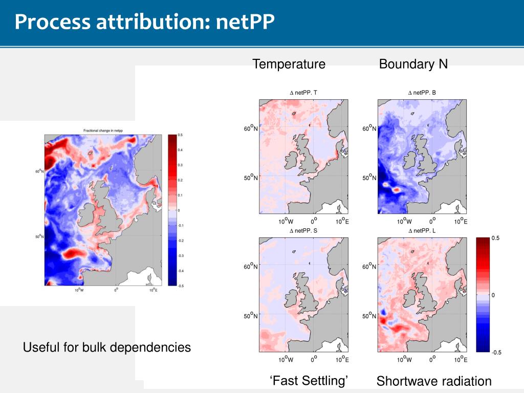 Process attribution: netPP Temperature Boundary N Useful for bulk dependencies ‘Fast Settling’ Shortwave radiation ‘Fast Settling’ Shortwave radiation
