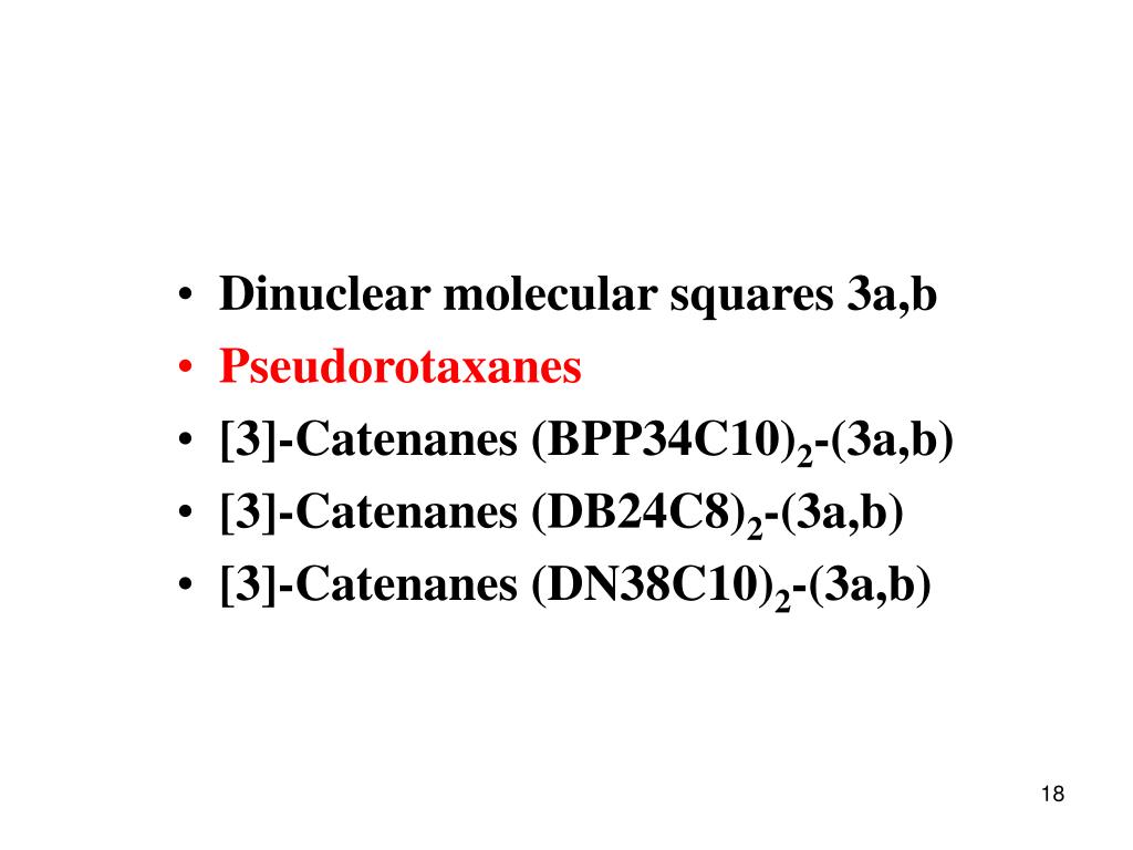 Dinuclear molecular squares 3a,b • Pseudorotaxanes • [3]-Catenanes (BPP34C10)2-(3a,b) • [3]-Catenanes (DB24C8)2-(3a,b) • [3]-Catenanes (DN38C10)2-(3a,b)