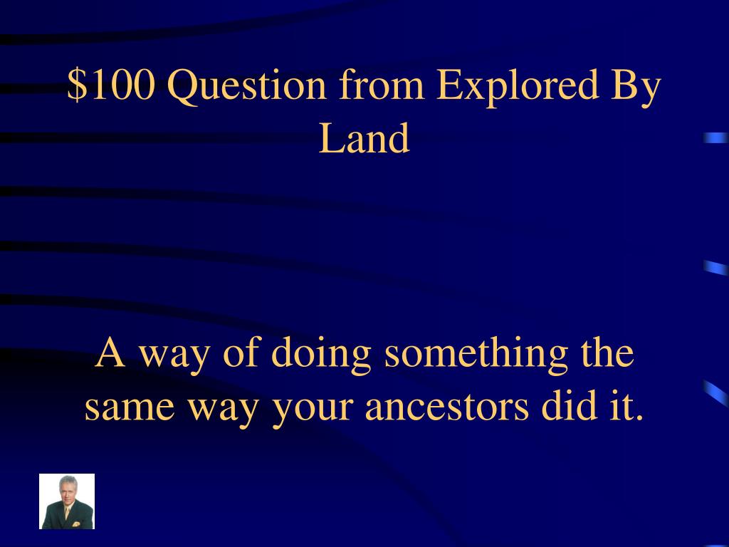 $100 Question from Explored By LandA way of doing something the same way your ancestors did it.
