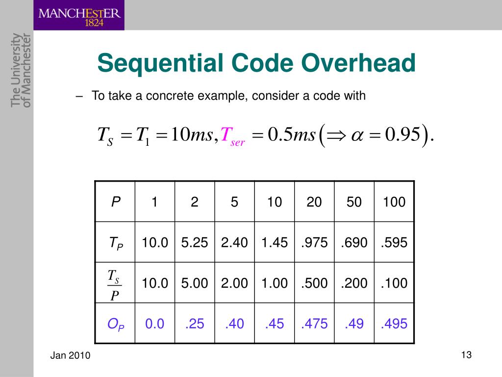 Sequential Code Overhead • To take a concrete example, consider a code with