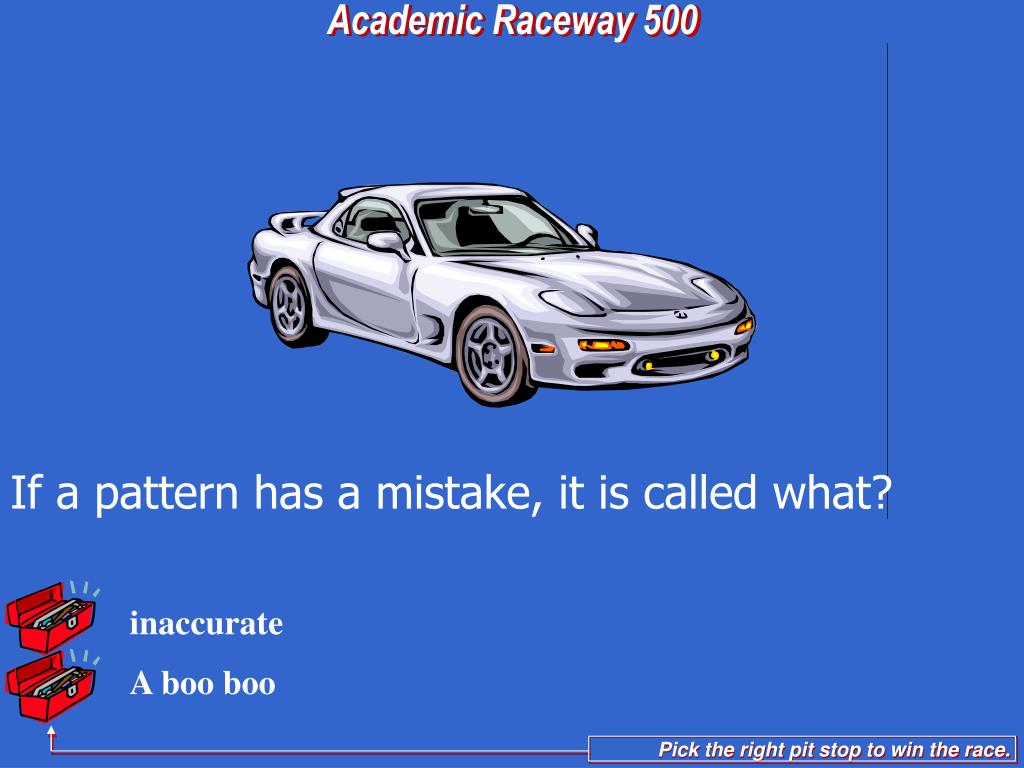 A boo boo inaccurate Academic Raceway 500 If a pattern has a mistake, it is called what?