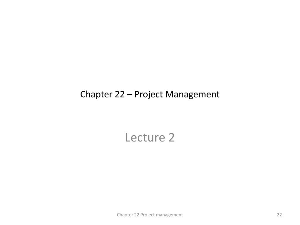 Chapter 22 – Project Management Lecture 2 Chapter 22 Project management