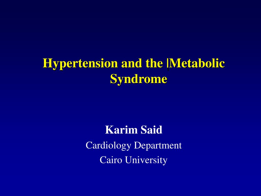 Hypertension and the |Metabolic Syndrome Karim Said Cardiology Department Cairo University
