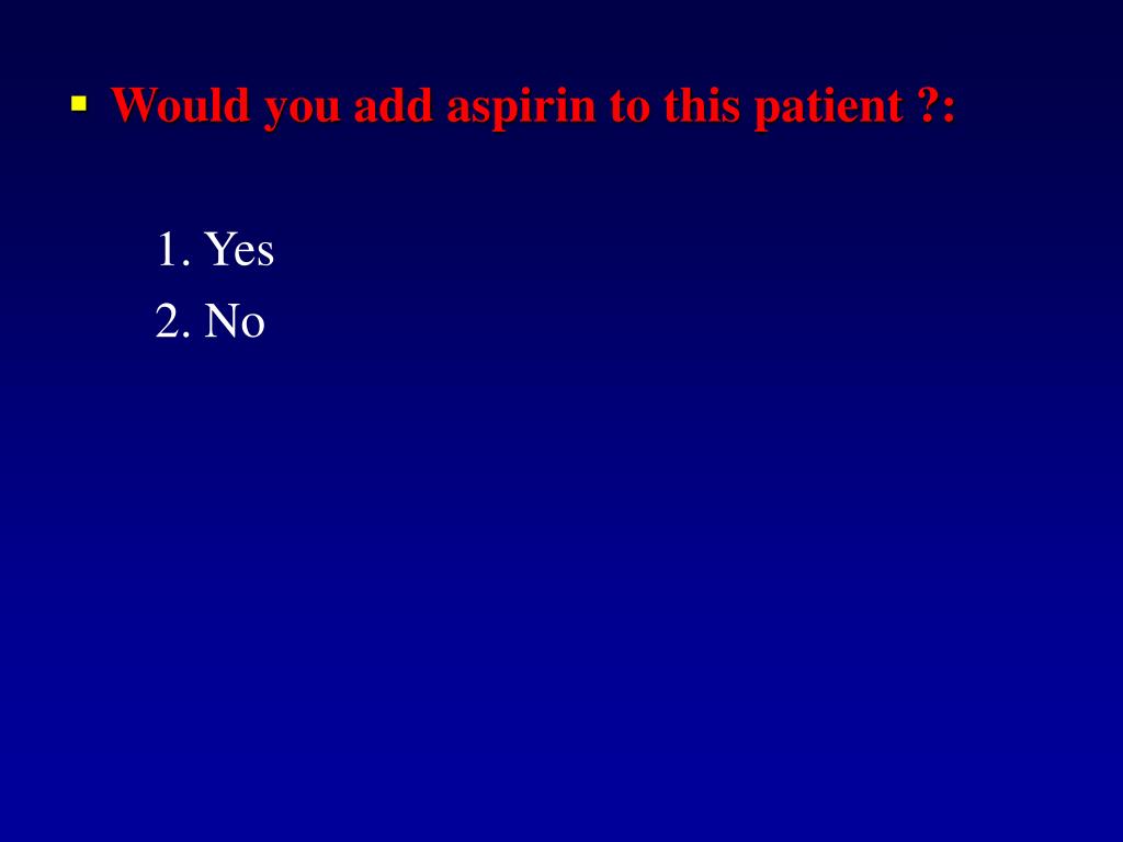 Would you add aspirin to this patient ?: 1. Yes 2. No